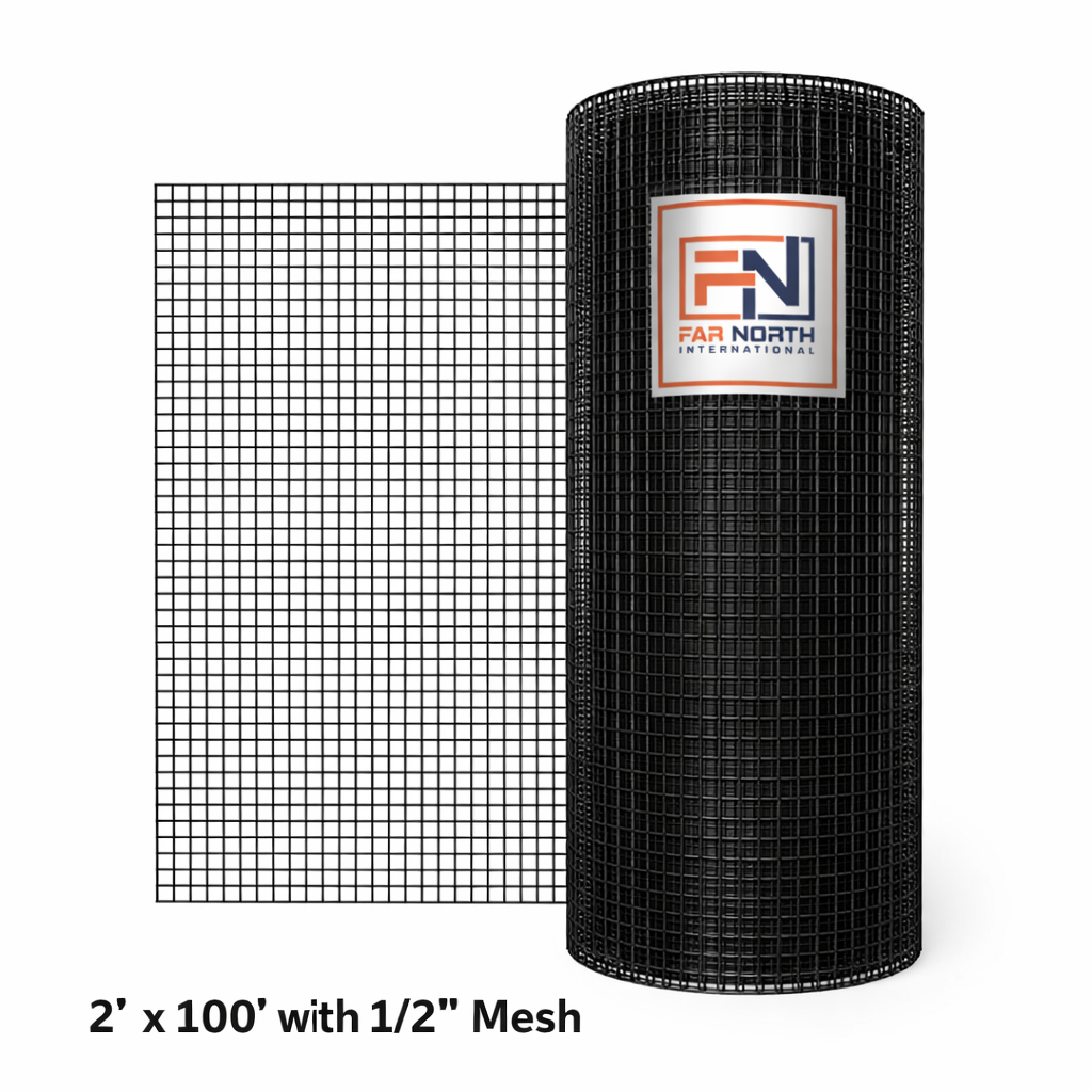 Welded Wire 16 Gauge Vinyl Black 16 Gauge 24″ x 50′, 48″x100′ Mesh 1/2″ x 1/2″ The strong mesh prevents damage and will not loosen if cut into pieces or if under pressure. Thick vinyl coating protects the wire from rusting as well as from harsh weather, from high and low temperatures, and from chemicals. This all-purpose welded wire can be used, for example, for crab/ lobster traps, pet kennels, and garden protection. The durability gives it a long and reliable lifespan.