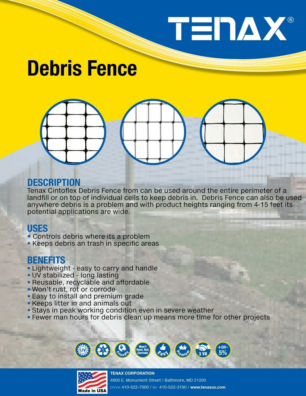 Perfect to protect the perimeter of any property or construction site and to prevent/control debris spread.